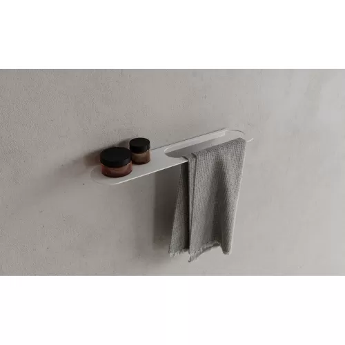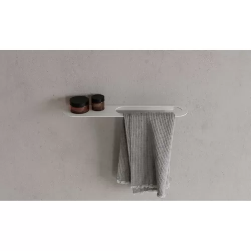 Banyoda raflı kancalı havlu askısı, beyaz tabanlı